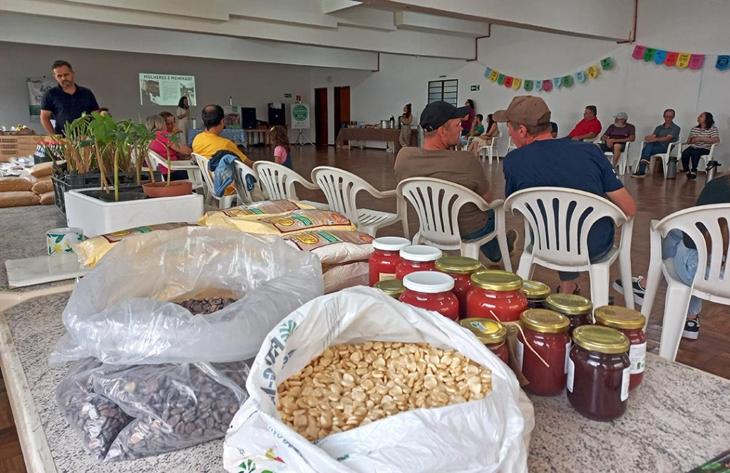 No período da tarde, a plenária tratou de temas internos do Núcleo Planalto, incluindo a organização para a participação no 13º Encontro Ampliado da Rede Ecovida de Agroecologia (EARE), previsto para ocorrer em Santa Rosa (RS) no mês de novembro, e o planejamento das datas para as visitas de olhar externo nas áreas de produção ao longo de 2026. Também aconteceu a tradicional feira de demonstração e comercialização da diversidade produzida pelas famílias do Núcleo. A realização da atividade contou com apoio do projeto Da Terra à Mesa, desenvolvido em parceria com o Ministério do Desenvolvimento Agrário e Agricultura Familiar (MDA).